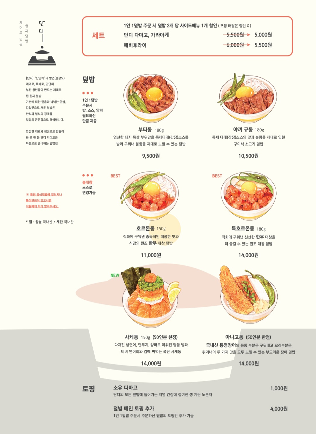단디 대표메뉴 입니다.
